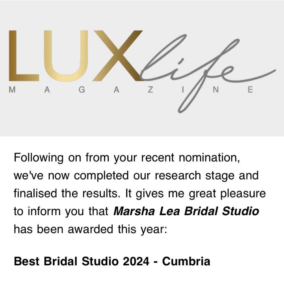 Marsha Lea are very proud of our awards we have won, Thank you to all our bride that have voted for us, We have enjoyed looking after you all on your wedding journey